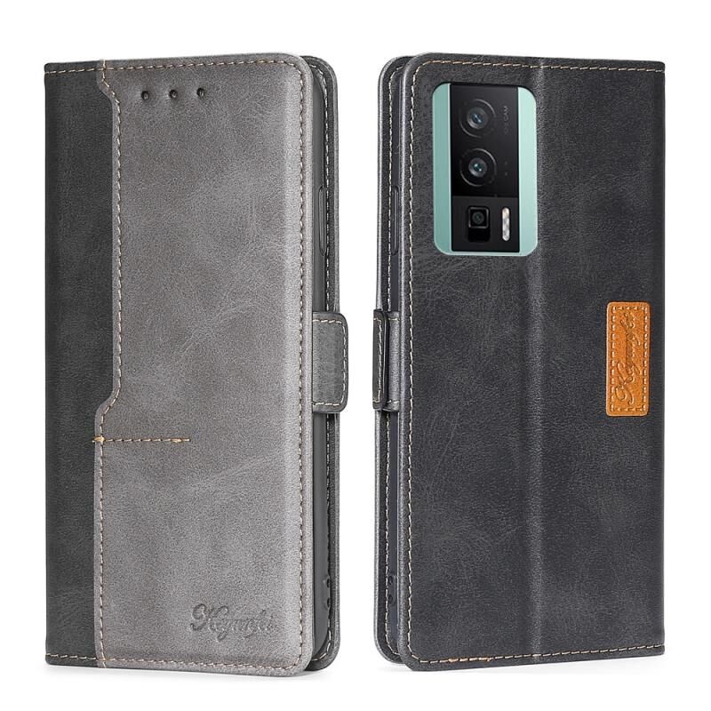 Για Xiaomi Redmi K60 / K60 Pro Αντίθεση χρώμα πλευρά πόρπη δερμάτινη θήκη τηλεφώνου (Μαύρο + Γκρι)