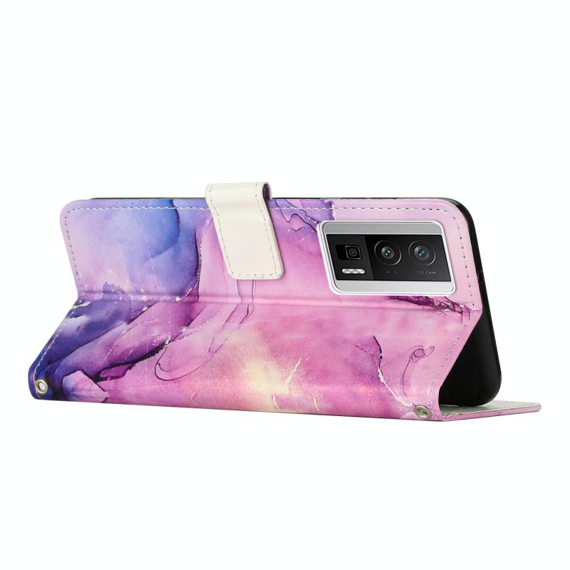 For Xiaomi Redmi K60 / K60 Pro Crossbody Painted Marble Pattern Leather Phone Case(Purple)