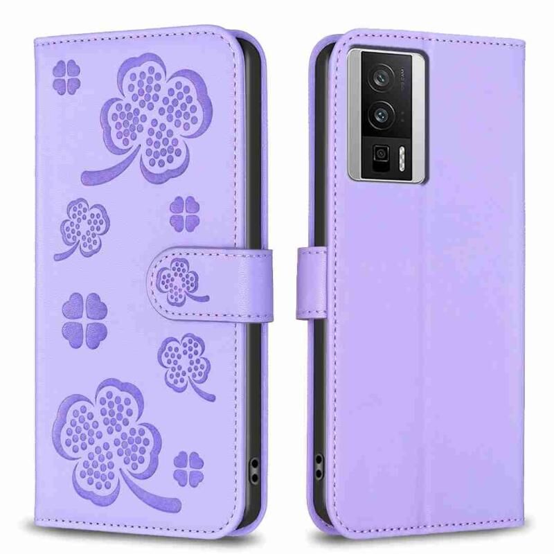 Για Xiaomi Redmi K60 / K60 Pro τετράφυλλο ανάγλυφη δερμάτινη θήκη τηλεφώνου (Μωβ)