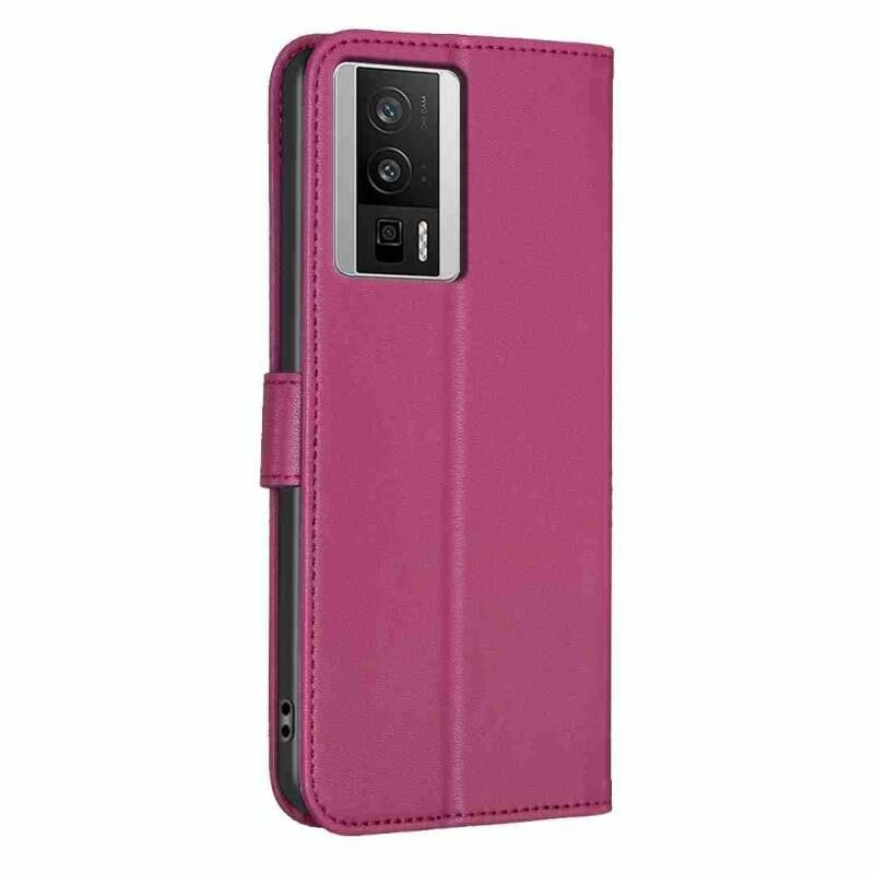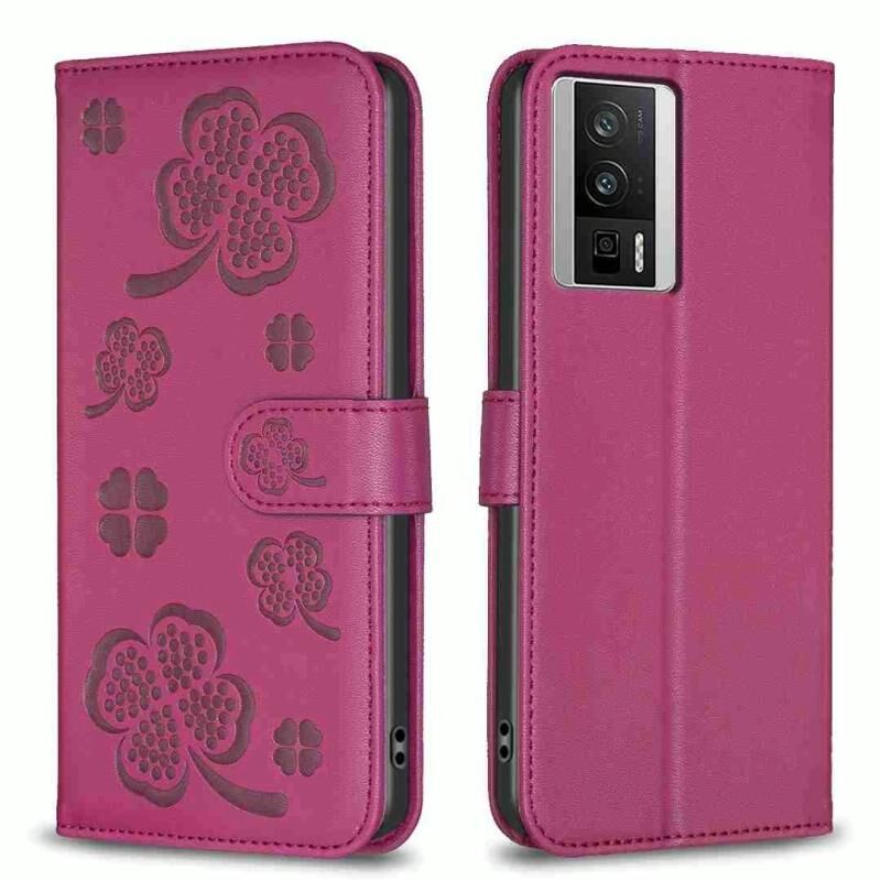Για Xiaomi Redmi K60 / K60 Pro τεσσάρων φύλλων ανάγλυφη δερμάτινη θήκη τηλεφώνου (Rose Red)