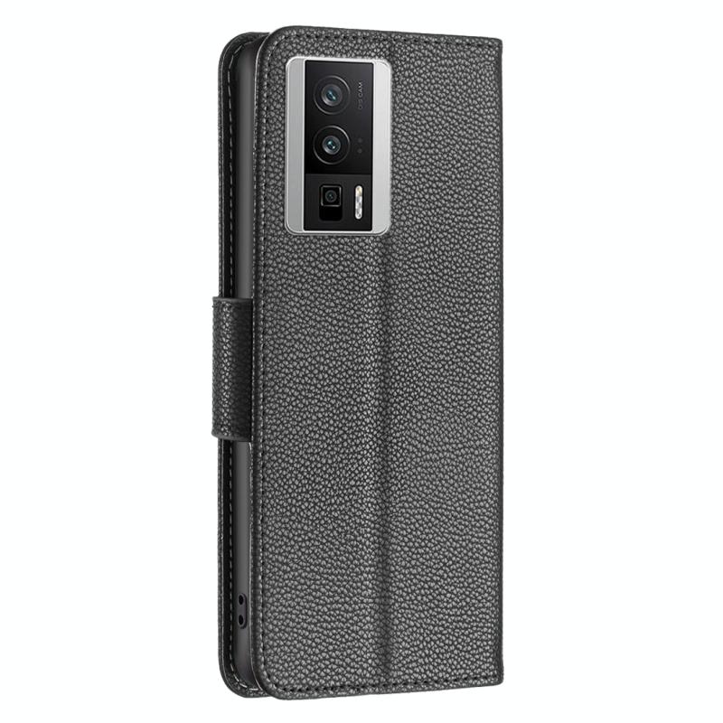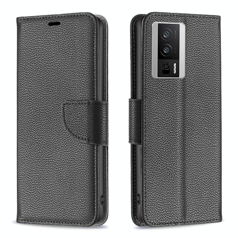 Θήκη τηλεφώνου από γνήσιο δέρμα με υφή λυτσί και καθαρό χρώμα για Xiaomi Redmi K60 / K60 Pro (Μαύρο)