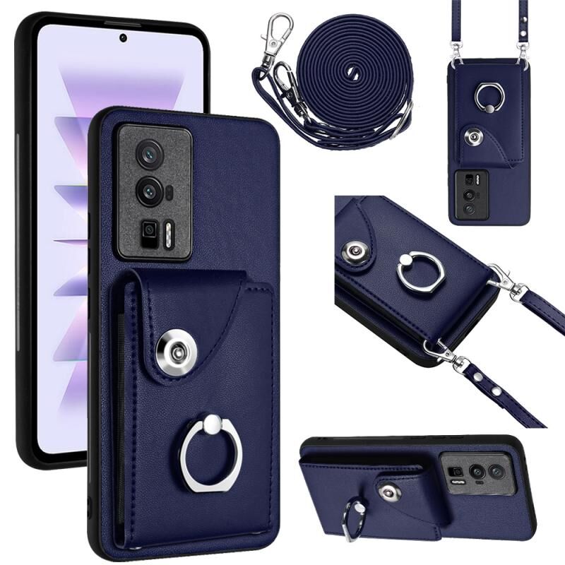 Για Xiaomi Redmi K60 / K60 Pro Organ Card Bag τσάντα δαχτυλίδι κάτοχος τηλέφωνο υπόθεση με μακρύ κορδόνι (Μπλε)