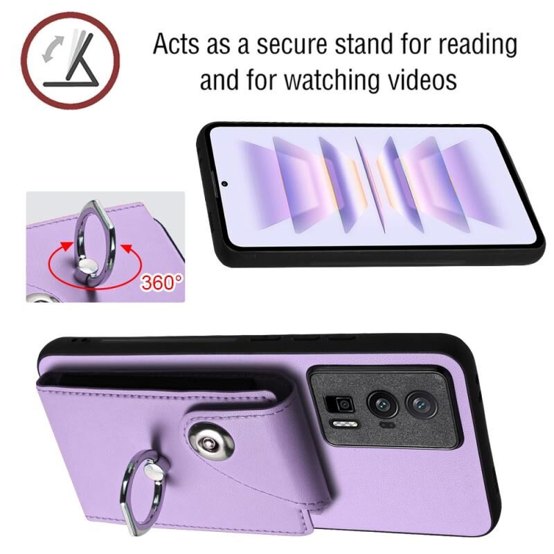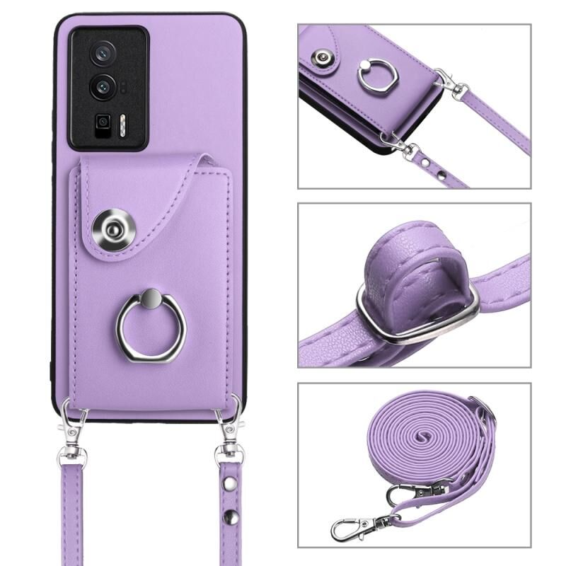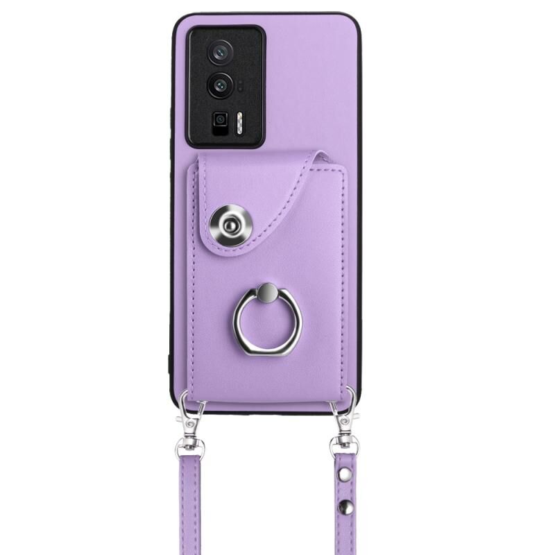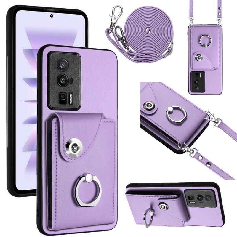 Για Xiaomi Redmi K60 / K60 Pro Organ Card Bag τσάντα δαχτυλίδι κάτοχος τηλέφωνο υπόθεση με μακρύ κορδόνι (Μωβ)