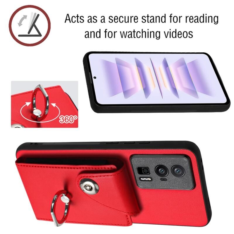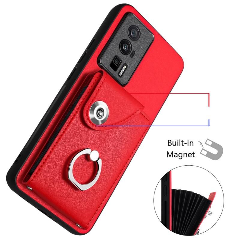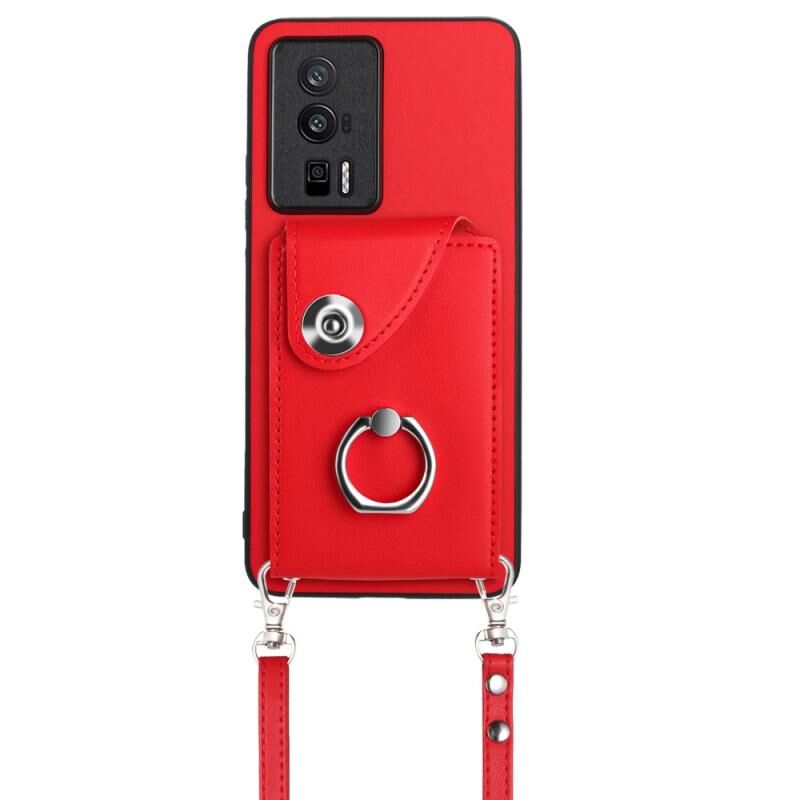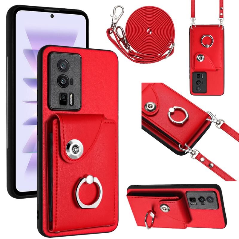 Για Xiaomi Redmi K60 / K60 Pro Organ Card τσάντα τσάντα δαχτυλίδι κάτοχος τηλέφωνο υπόθεση με μακρύ κορδόνι (Κόκκινο)