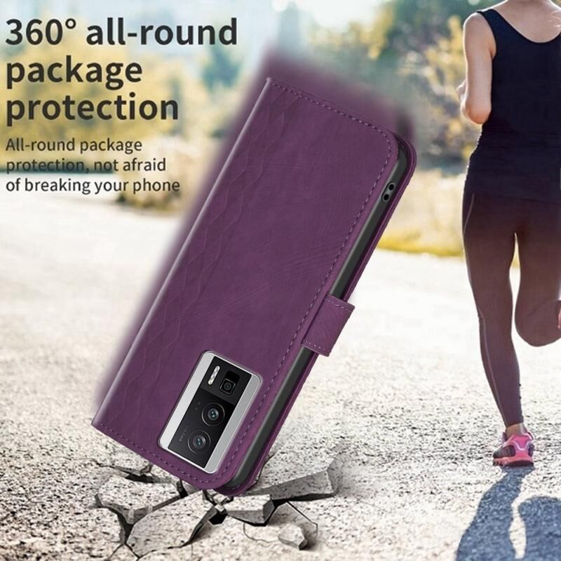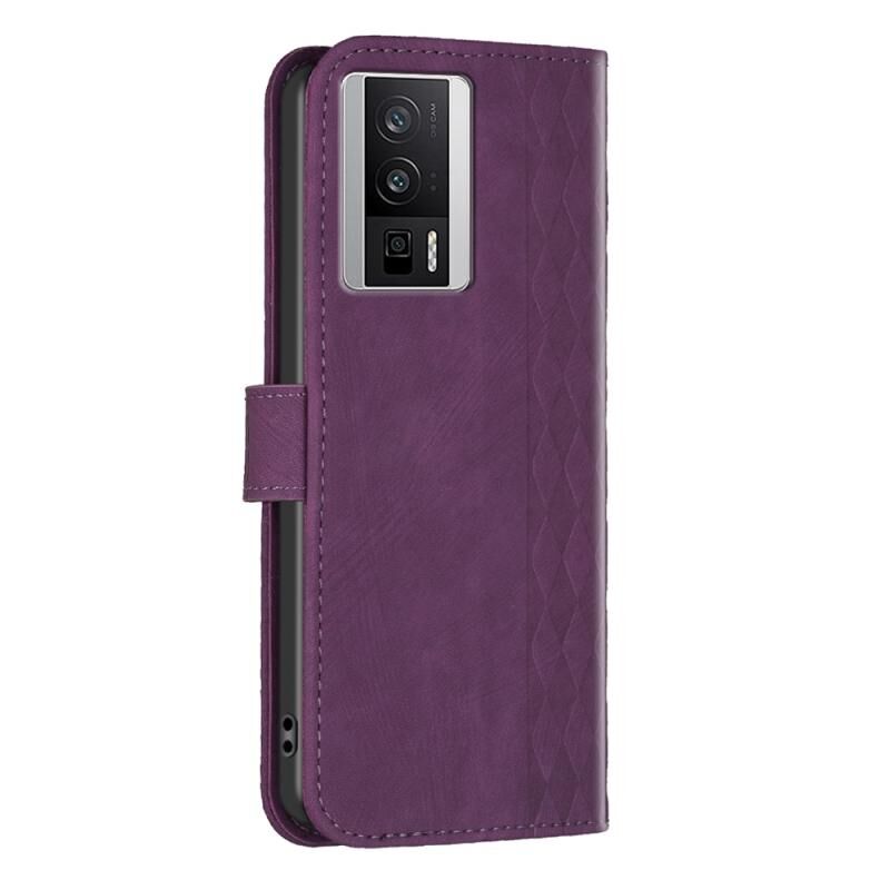 Για Xiaomi Redmi K60 / K60 Pro καρό ανάγλυφη δερμάτινη θήκη τηλεφώνου (μωβ)