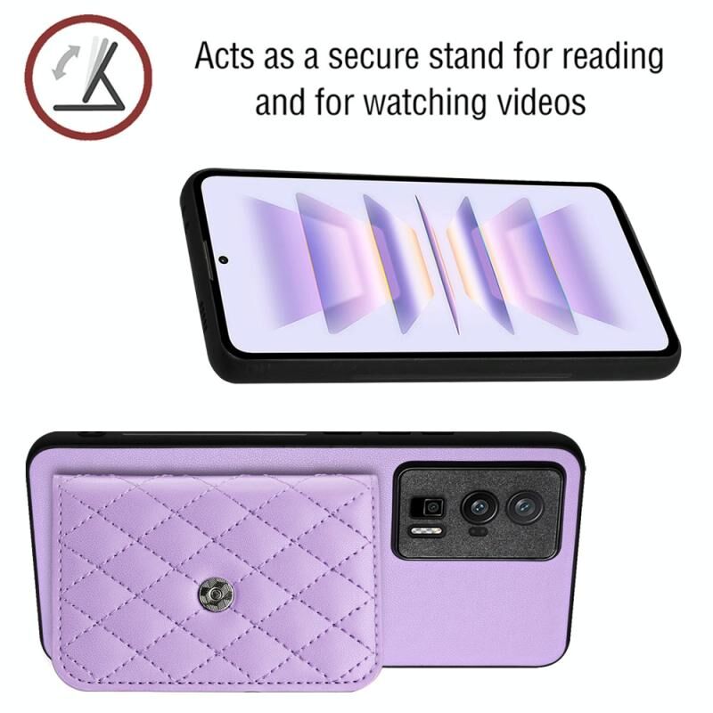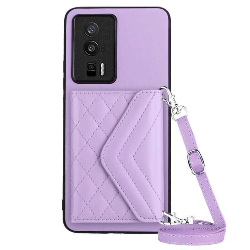 Για Xiaomi Redmi K60 / K60 Pro Rhombic υφή κάρτα τσάντα RFID υπόθεση τηλεφώνου με μακρύ κορδόνι (Light Purple)