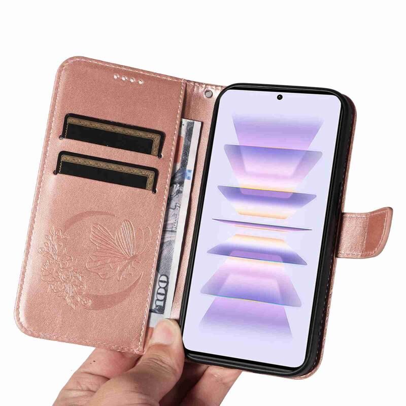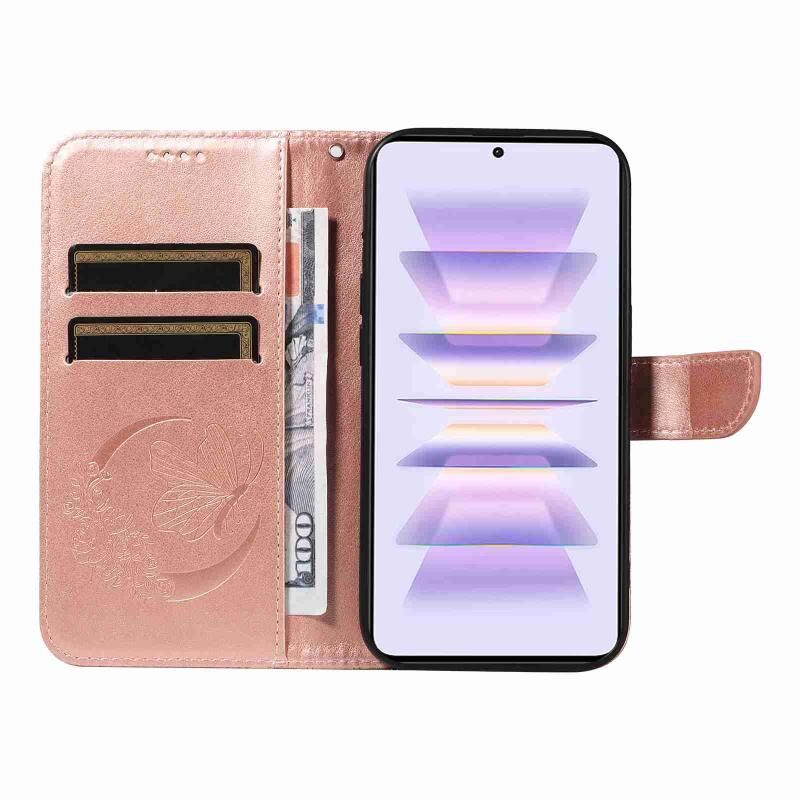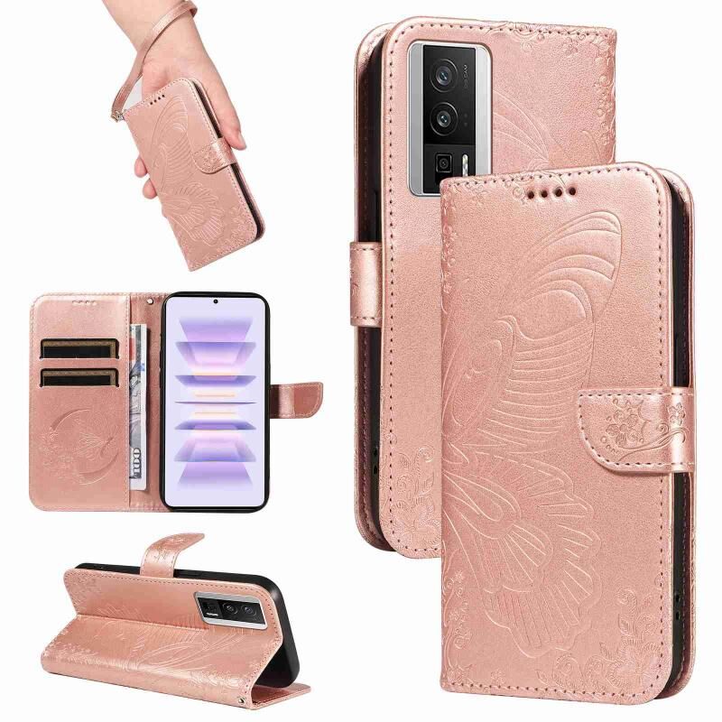 Θήκη τηλεφώνου από δέρμα με ανάγλυφο σχέδιο πεταλούδας για Xiaomi Rose Goldmi K60 / K60 Pro (Κόκκινο)