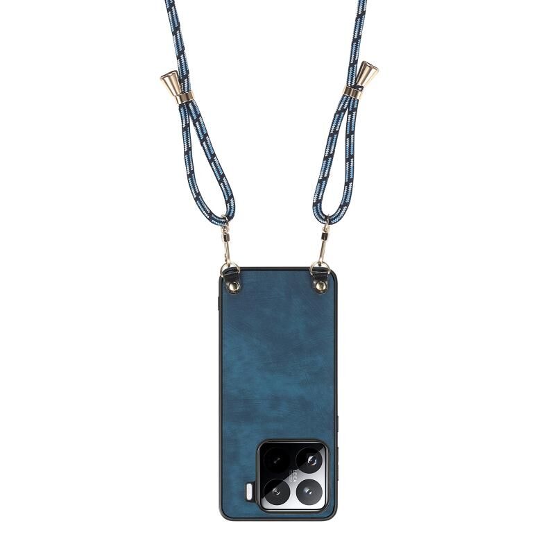 Για Xiaomi Redmi K60 / K60 Pro εκλεκτής ποιότητας δέρμα PC πίσω κάλυμμα τηλέφωνο υπόθεση με λουράκι σταυρού (μπλε)