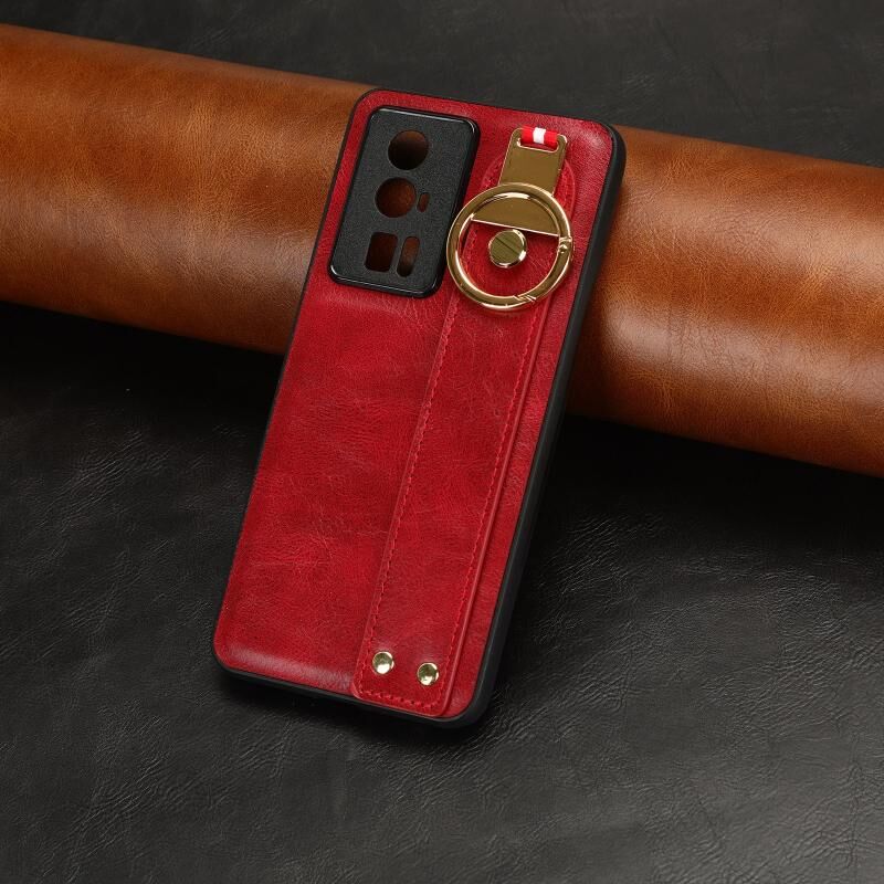 Για Xiaomi Redmi K60 / K60 Pro Wristband δερμάτινη πίσω θήκη τηλεφώνου (κόκκινο)
