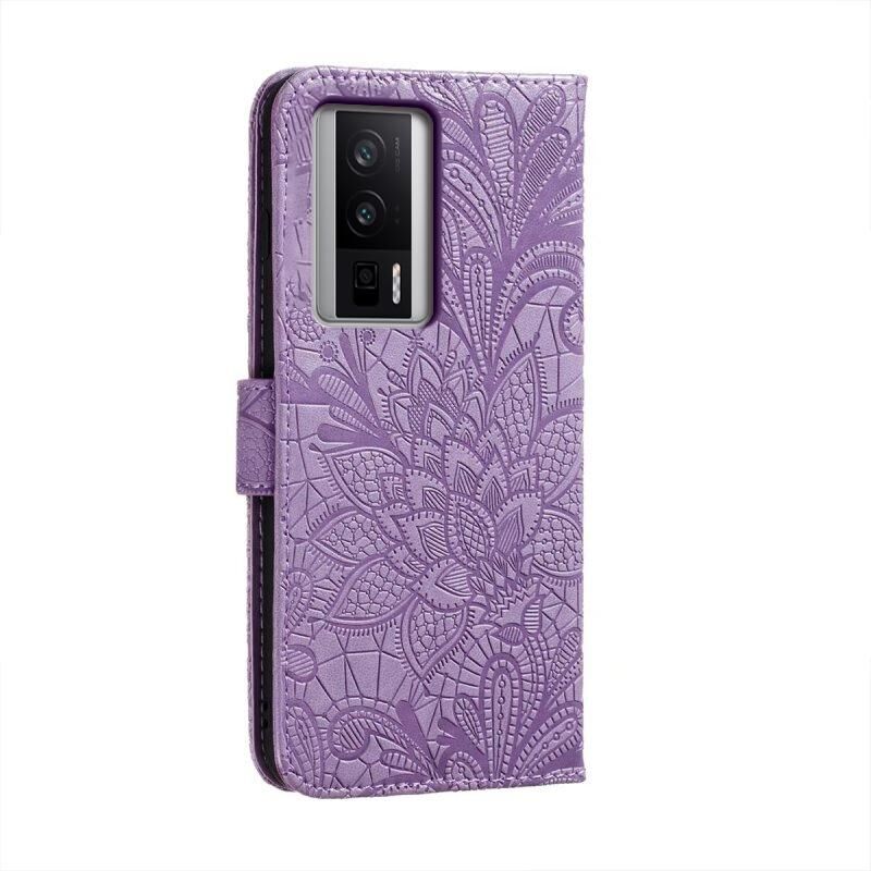 Για Xiaomi Redmi K60 Lace λουλούδι ανάγλυφο Flip δέρμα τηλέφωνο υπόθεση (μωβ)