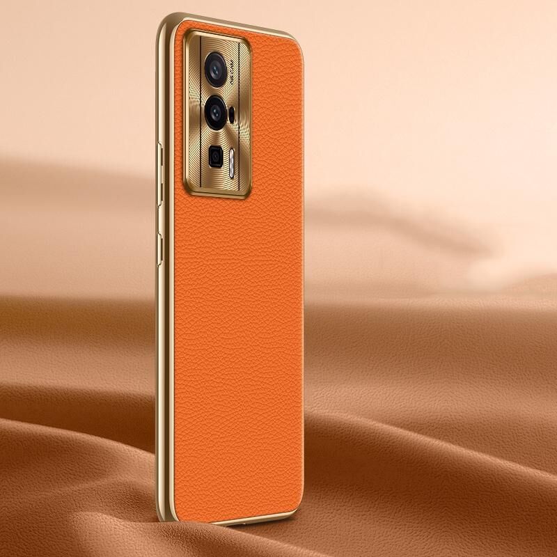 Θήκη τηλεφώνου από γνήσιο δέρμα με υφή λitchi για Xiaomi Redmi K60 (Πορτοκαλί)