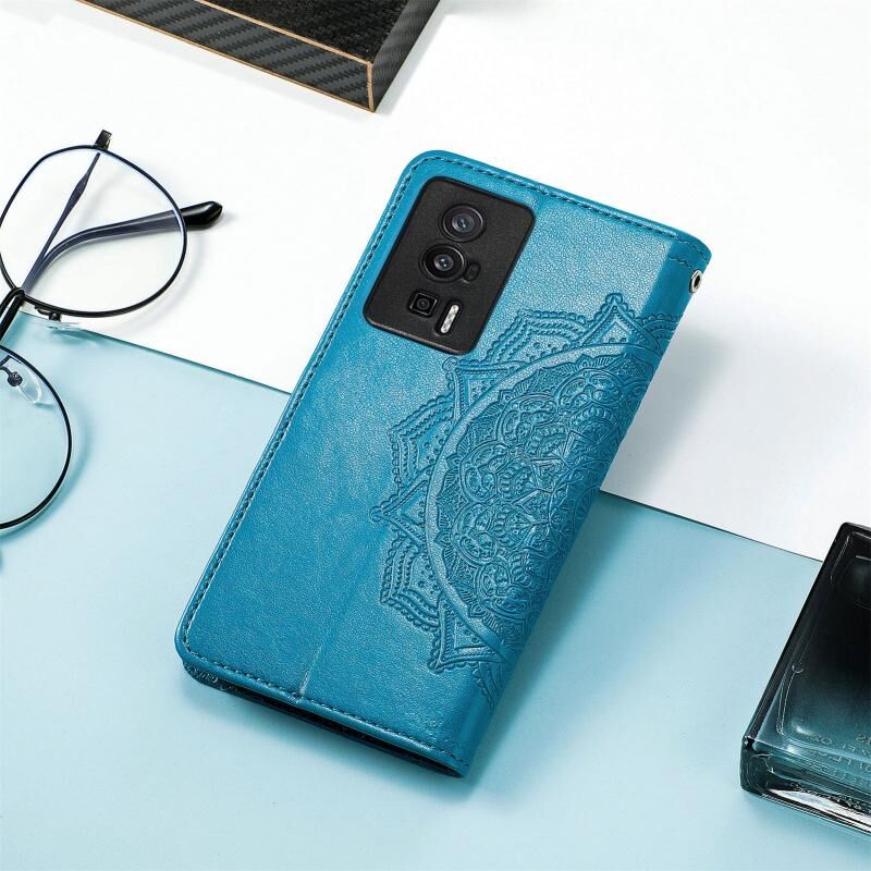 Για Xiaomi Redmi K60 Pro Mandala λουλούδι ανάγλυφο δερμάτινη θήκη τηλεφώνου (μπλε)