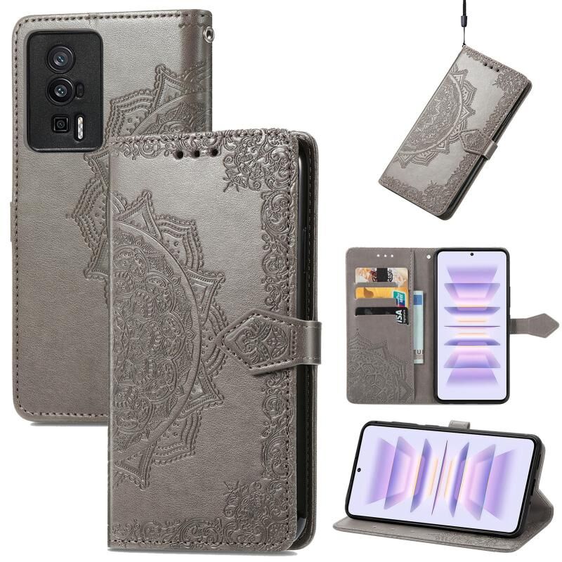 Για Xiaomi Redmi K60 Pro Mandala λουλούδι ανάγλυφη δερμάτινη θήκη τηλεφώνου (Γκρι)