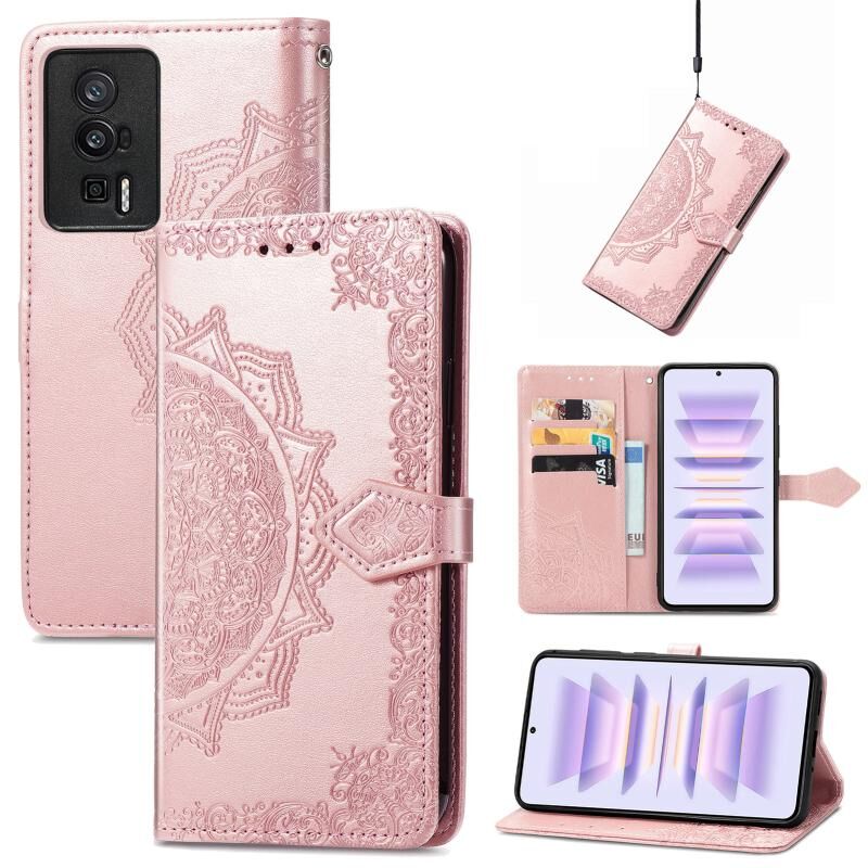 Για Xiaomi Redmi K60 Pro Mandala λουλούδι ανάγλυφο δερμάτινη θήκη τηλεφώνου (Ροζ χρυσός)