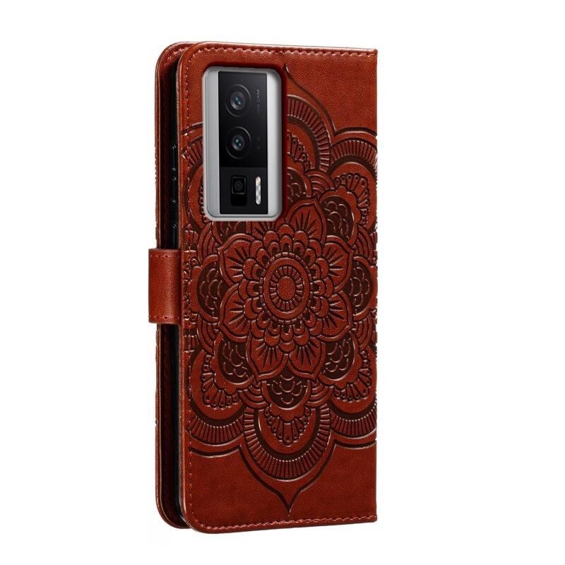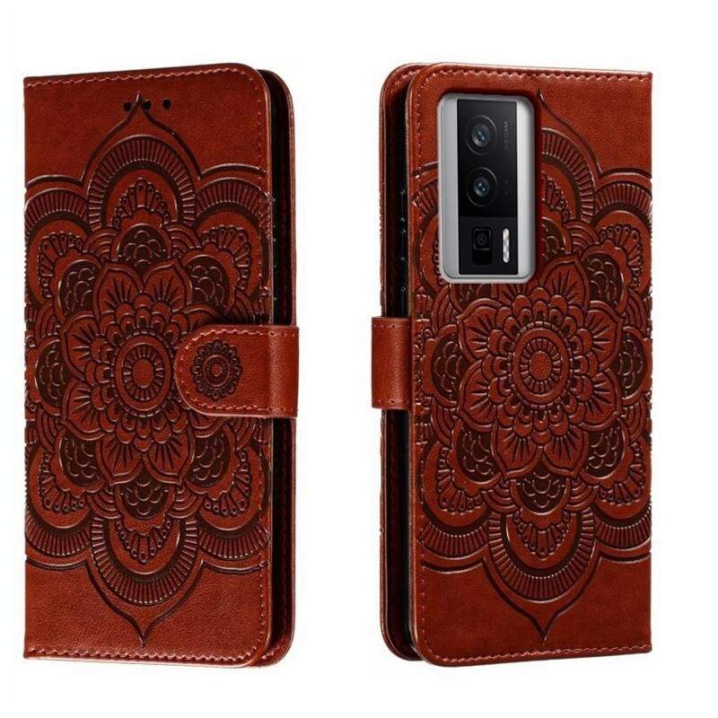 Για Xiaomi Redmi K60 Sun Mandala ανάγλυφο μοτίβο τηλέφωνο δερμάτινη θήκη (καφέ)
