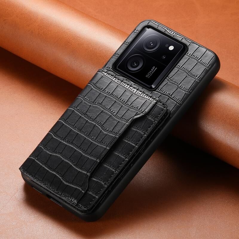 Θήκη κινητού τηλεφώνου πλήρους κάλυψης με υφή κροκόδειλου και σχεδιασμό θήκης καρτών για Xiaomi Redmi K60 Ultra/13T/13T Pro (Καφέ)