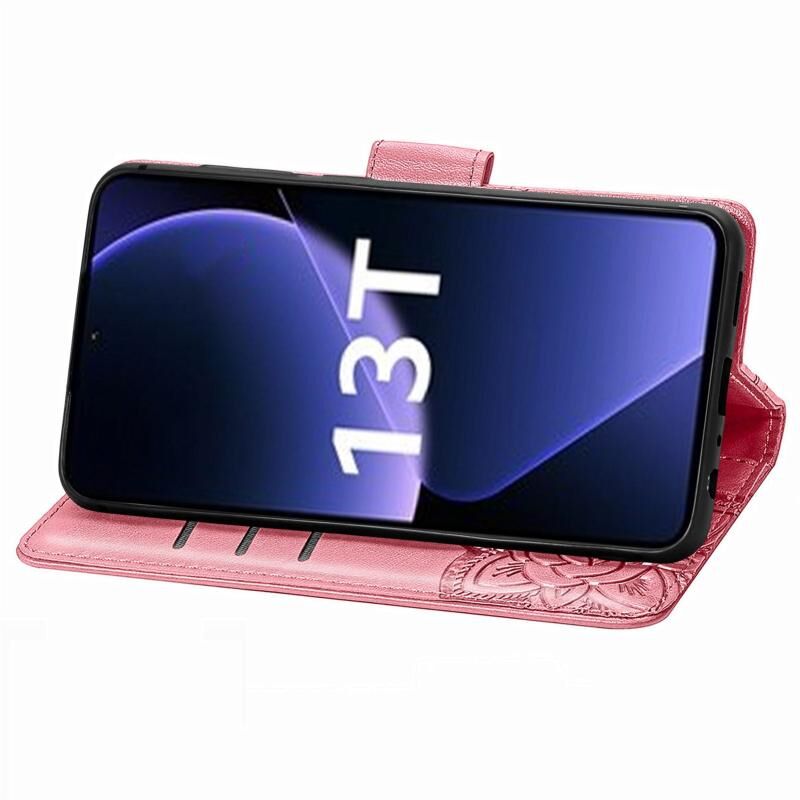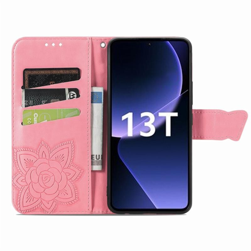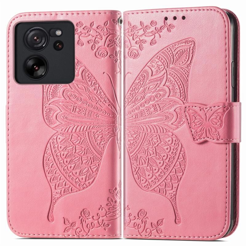 Θήκη τηλεφώνου δερμάτινη ανάγλυφη με σχέδιο πεταλούδας και λουλουδιών για Xiaomi Redmi K60 Ultra (Χρυσό Ροζ)