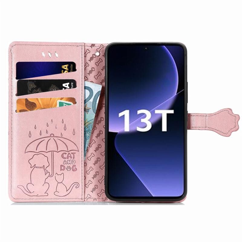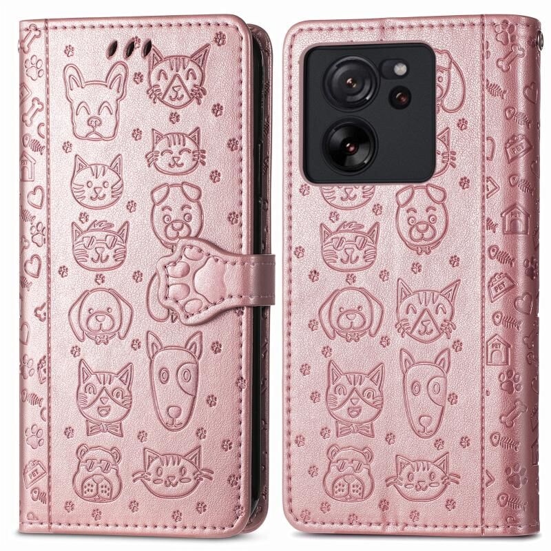Θήκη τηλεφώνου από δέρμα με ανάγλυφο σχέδιο γάτας και σκύλου για Xiaomi Redmi K60 Ultra (Χρυσό Ρόδι)