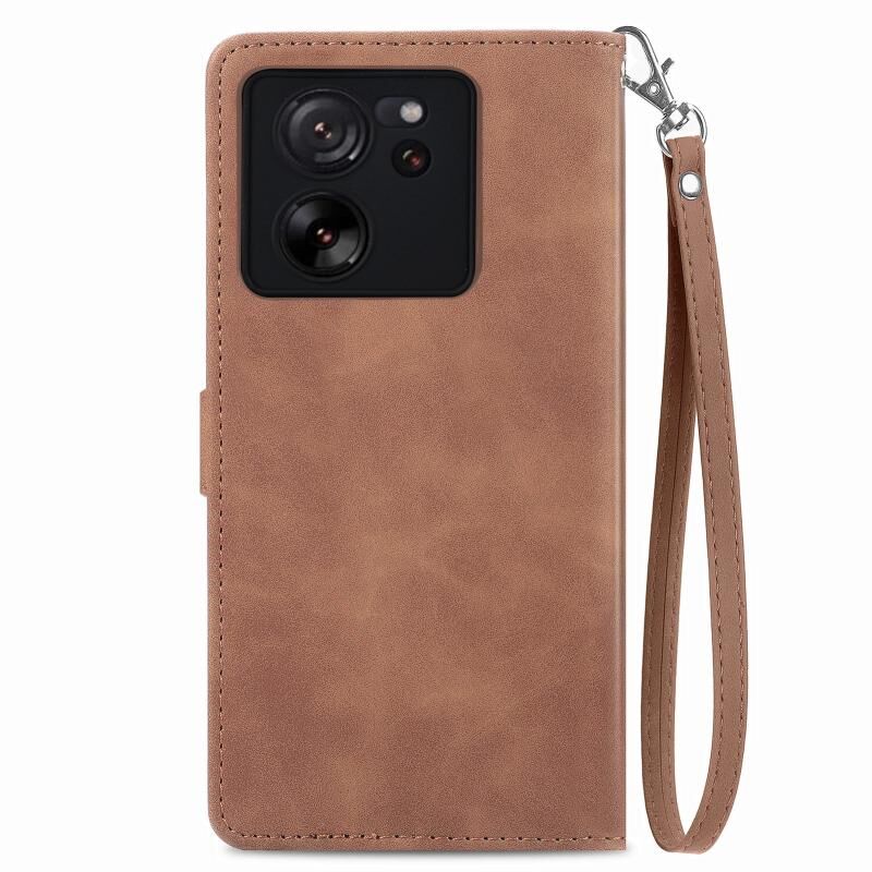 Για Xiaomi Redmi K60 Ultra ανάγλυφο λουλούδι φερμουάρ δερμάτινη θήκη τηλεφώνου (καφέ)