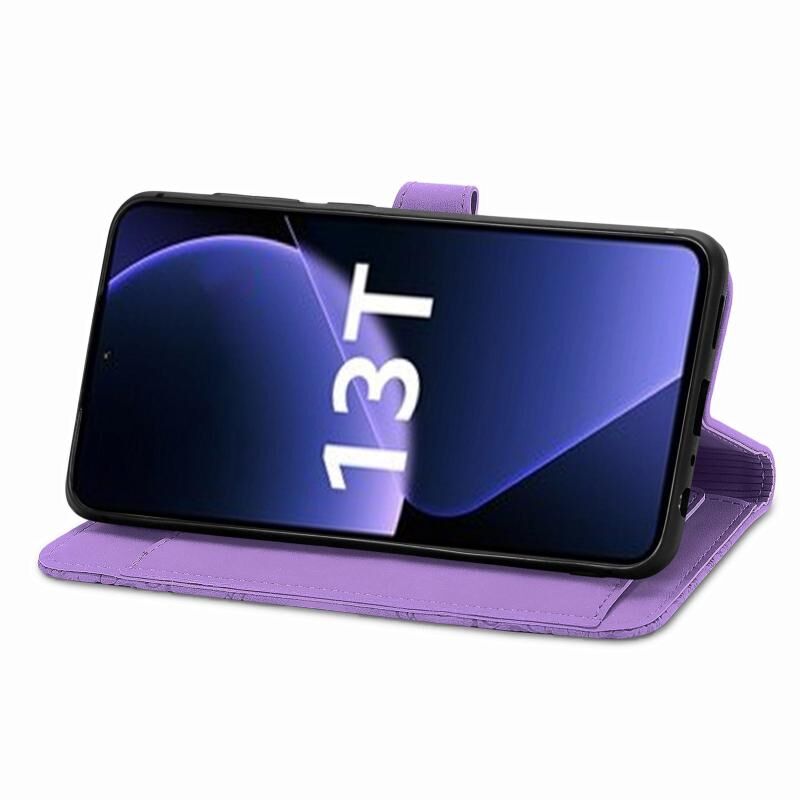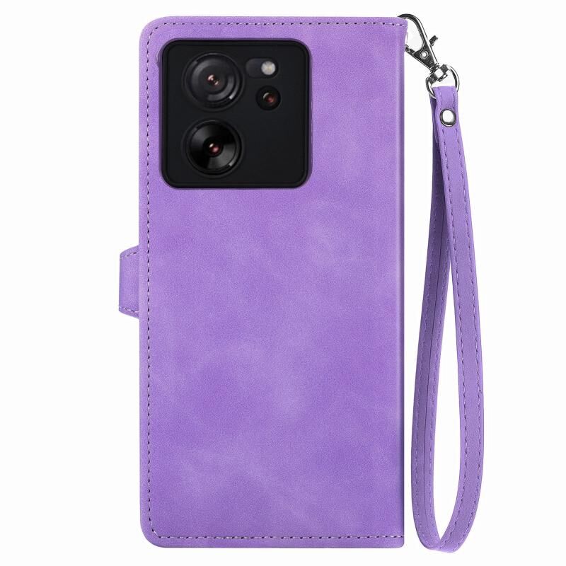 Για Xiaomi Redmi K60 Ultra ανάγλυφο λουλούδι φερμουάρ δερμάτινη θήκη τηλεφώνου (μωβ)