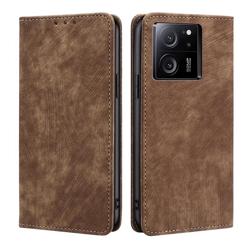 Για Xiaomi Redmi K60 Ultra RFID Anti-theft Brush Μαγνητική δερμάτινη θήκη τηλεφώνου (καφέ)