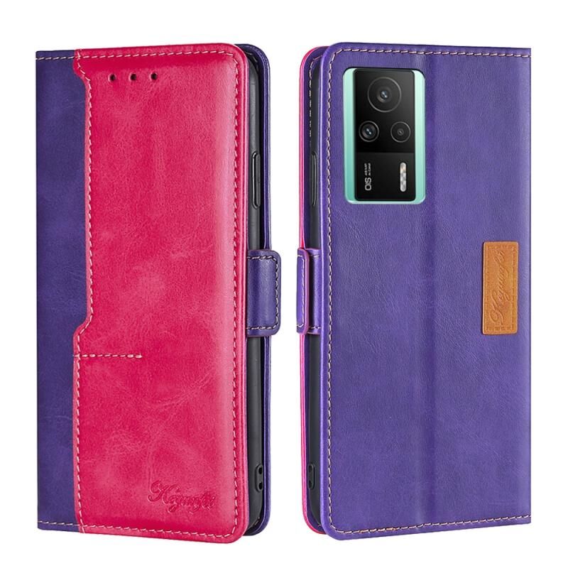 Για Xiaomi Redmi K60E Αντίθετο χρώμα πλευρά πόρπη δερμάτινη θήκη τηλεφώνου (μωβ + Rose Red)