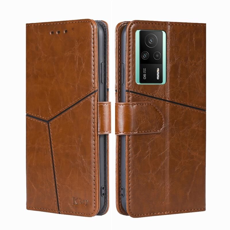 Για Xiaomi Redmi K60E γεωμετρική ραφή οριζόντια Flip υπόθεση τηλεφώνου δέρμα (ανοιχτό καφέ)
