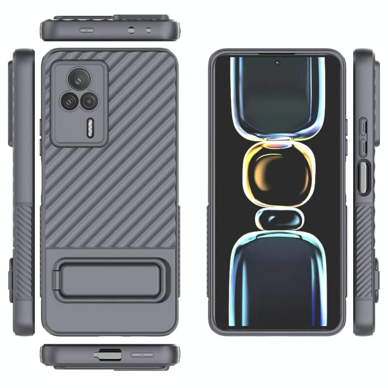 Για Xiaomi Redmi K60E κυματιστή υφή TPU υπόθεση τηλεφώνου με ταινία φακού (Γκρι)