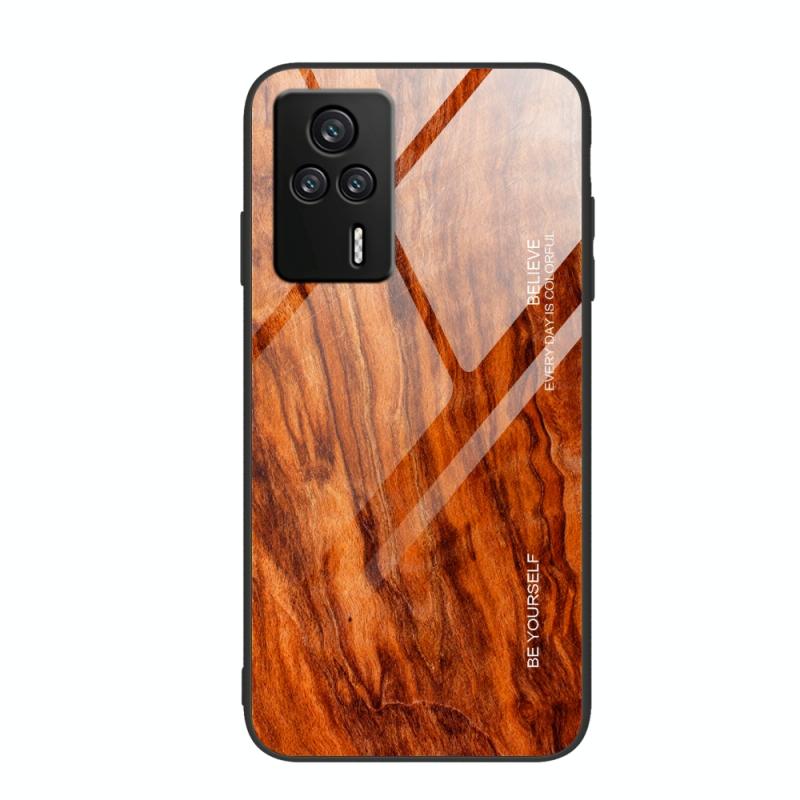 Θήκη τηλεφώνου Xiaomi Redmi K60E από γυαλί με σχέδιο ξύλου (Ανοιχτό καφέ)