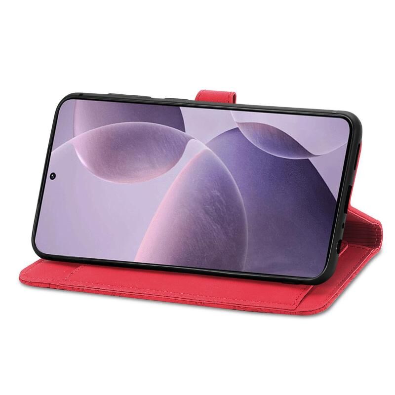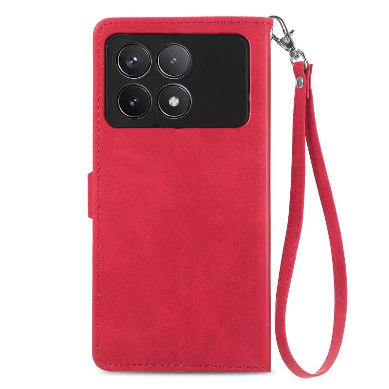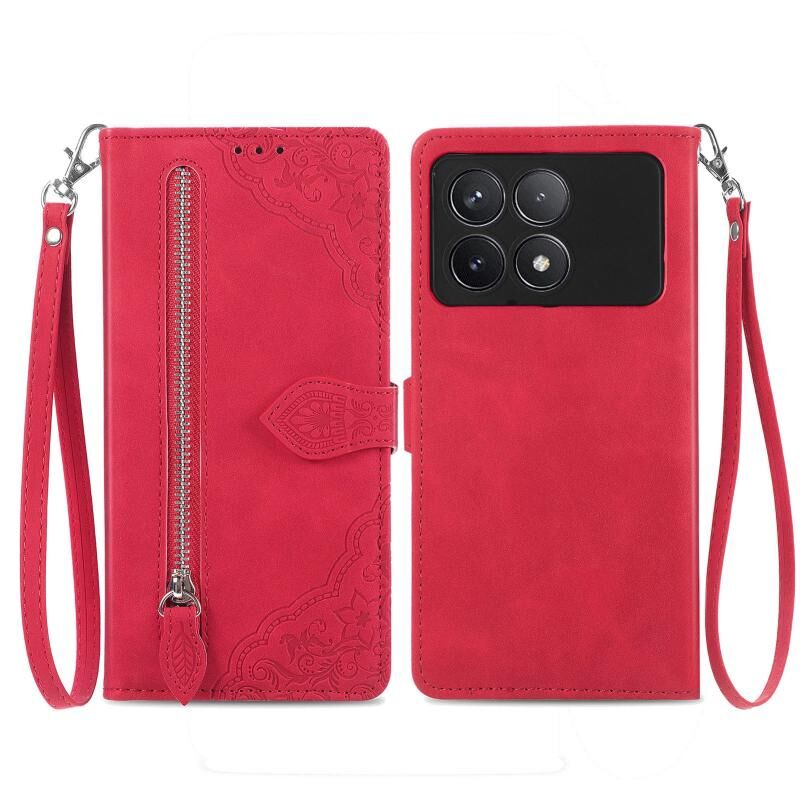 Για Xiaomi Redmi K70 ανάγλυφο λουλούδι φερμουάρ δερμάτινη θήκη τηλεφώνου (κόκκινο)