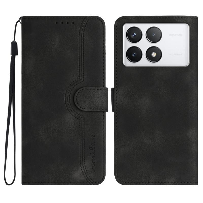 Για Xiaomi Redmi K70 καρδιά μοτίβο δέρμα δέρμα αίσθηση τηλέφωνο υπόθεση (μαύρο)