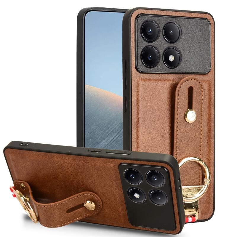 Για Xiaomi Redmi K70/K70 Pro Wristband δέρμα πίσω τηλέφωνο υπόθεση (καφέ)