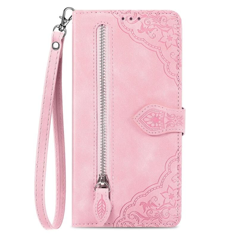 Για Xiaomi Redmi K70 Pro ανάγλυφο λουλούδι φερμουάρ δερμάτινη θήκη τηλεφώνου (ρόζ)