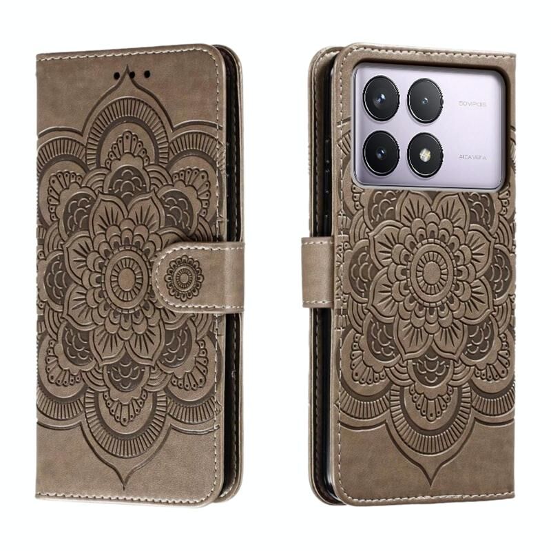 Για Xiaomi Redmi K70 Sun Mandala ανάγλυφο μοτίβο τηλέφωνο δερμάτινη θήκη (γκρι)