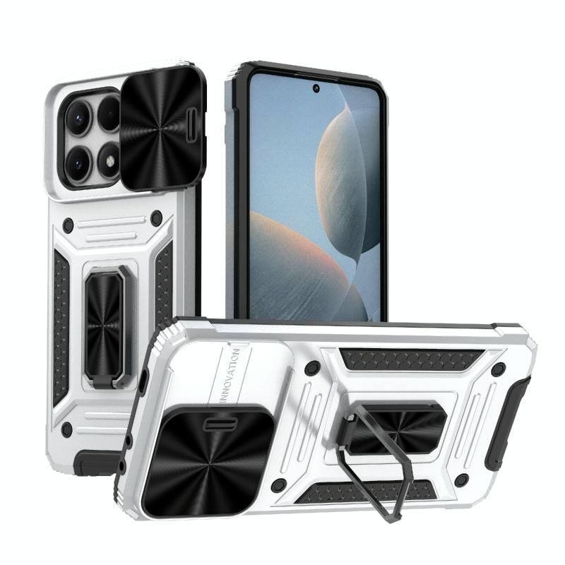 Για Xiaomi Redmi K70E 5G Camshield ρομπότ TPU υβριδικό PC τηλέφωνο υπόθεση (ασημί)