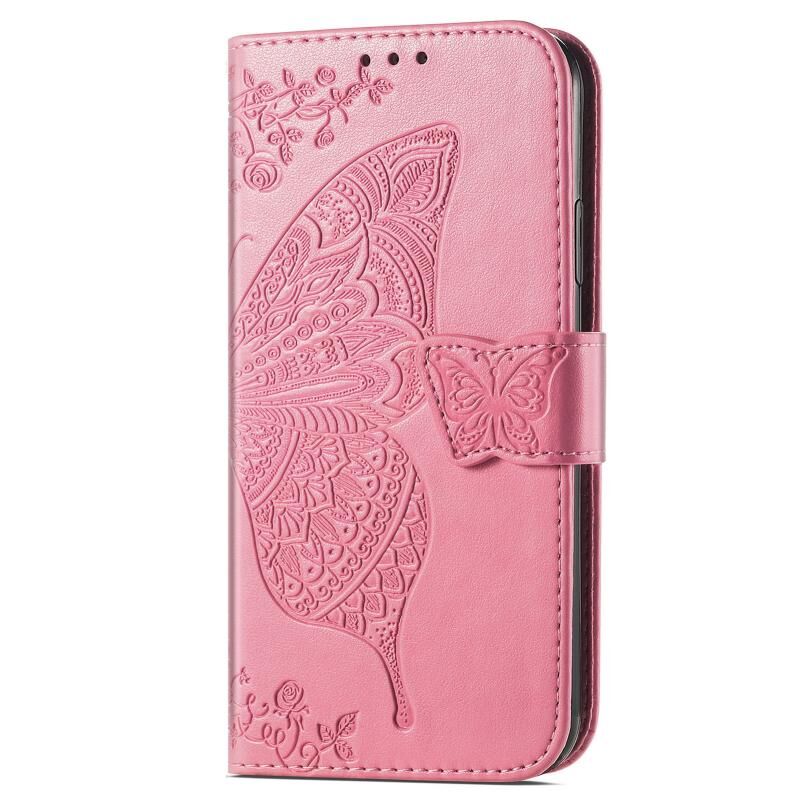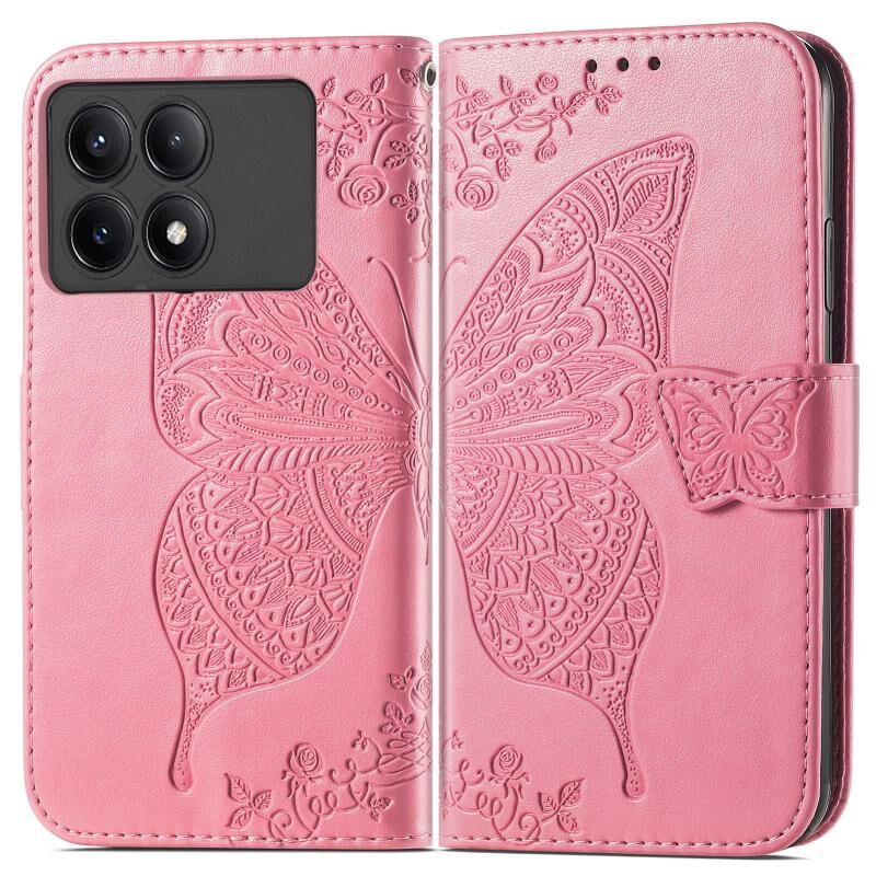 Θήκη τηλεφώνου δερμάτινη ανάγλυφη με λουλούδια και σχέδιο πεταλούδας για Xiaomi Redmi K70E (Χρυσό Ροζ)