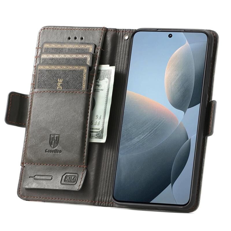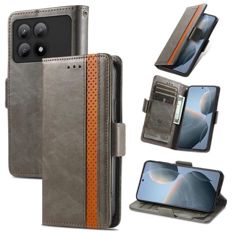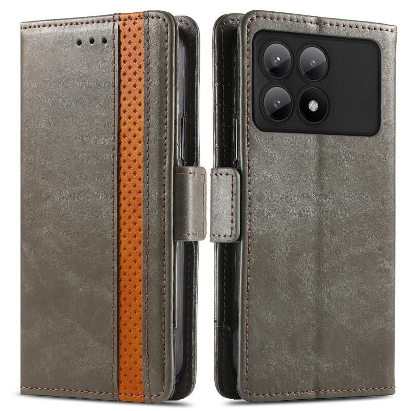 Για Xiaomi Redmi K70E CaseNeo Splicing Διπλή μαγνητική πόρπη δερμάτινη θήκη τηλεφώνου (γκρι)