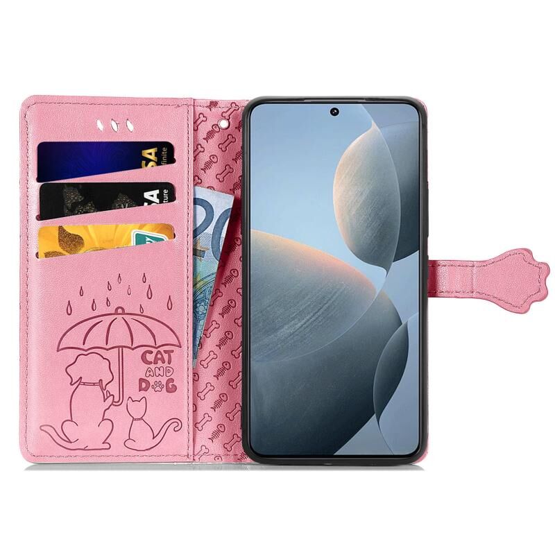 For Xiaomi Redmi K70E Cat and Dog Embossed Leather Phone Case(Pink)