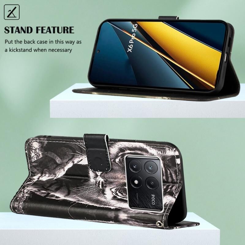 Θήκη τηλεφώνου από δέρμα με απλή ύφανση και πολύχρωμο σχέδιο για Xiaomi Redmi K70E (Τίγρης σε ασπρόμαυρο)