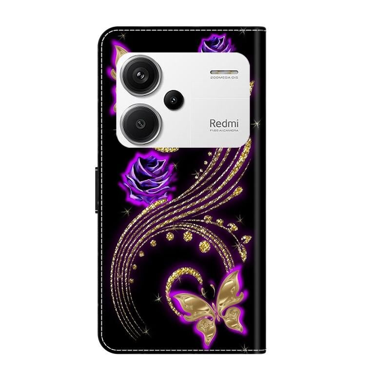 Θήκη κινητού τηλεφώνου από δέρμα, αντικραδασμική, προστατευτική 3D για Xiaomi Redmi K70E Crystal (Ροζ βάση, πεταλούδα)