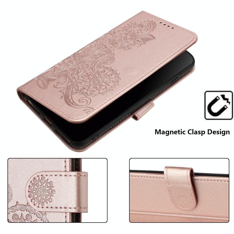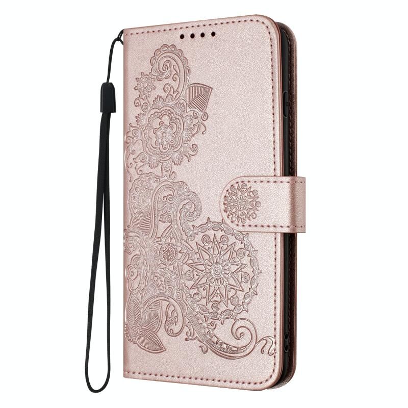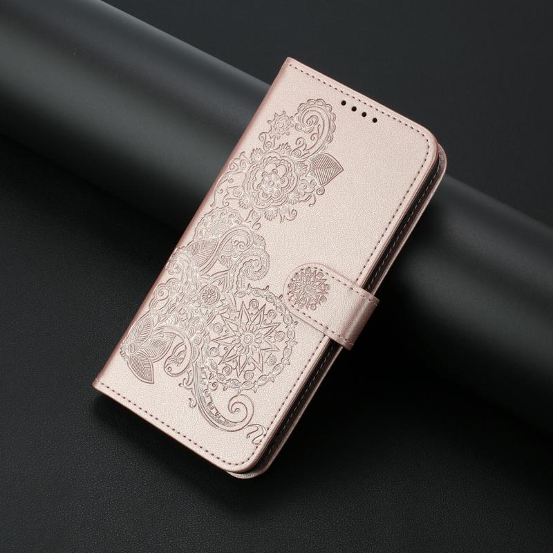 Θήκη δερμάτινη flip με ανάγλυφο λουλούδι Datura για Xiaomi Redmi K70E (Ροζ Χρυσό)