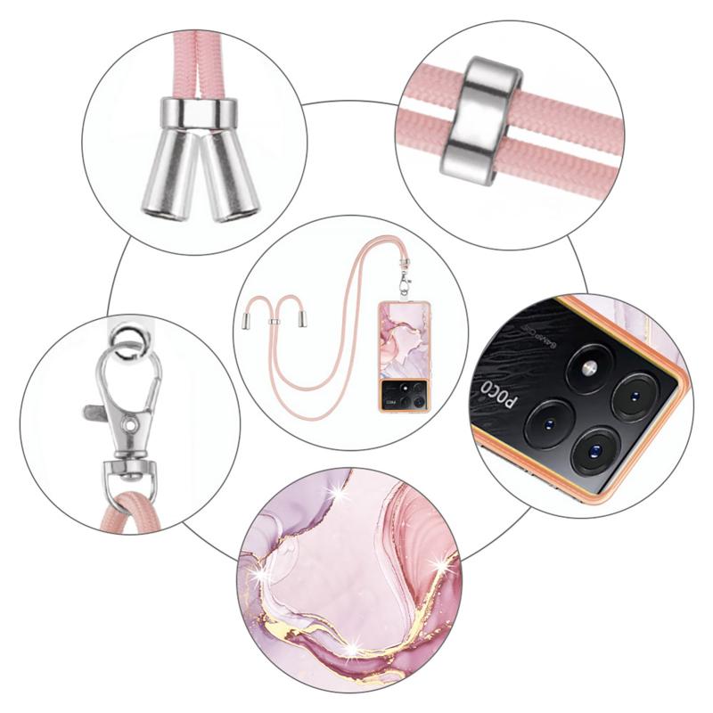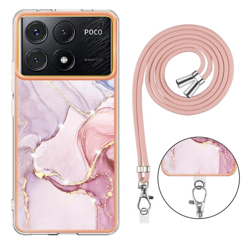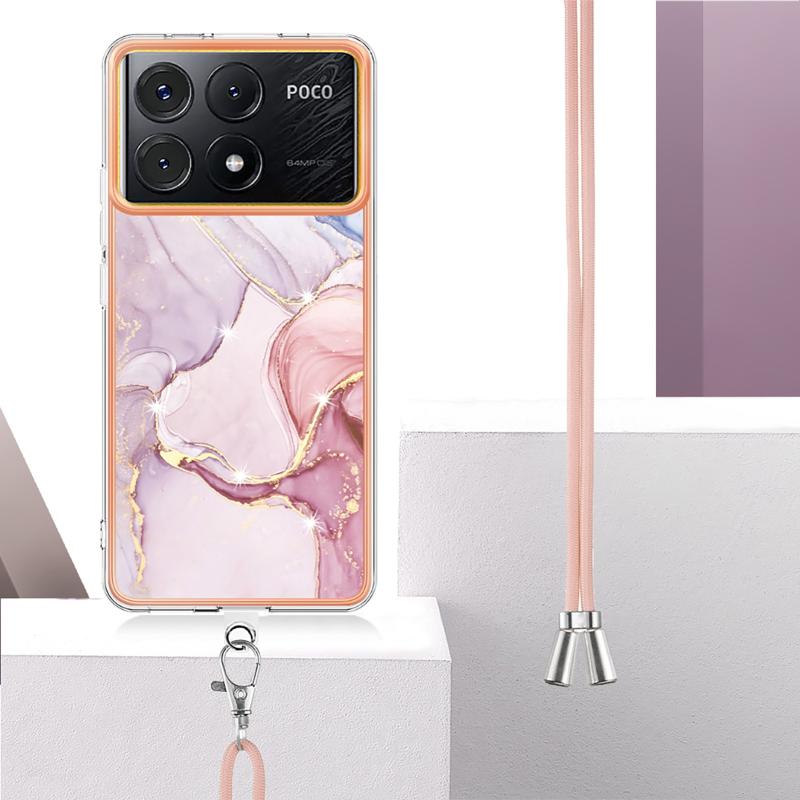 For Xiaomi Redmi K70E Electroplating Marble Dual-side IMD Phone Case with Lanyard(Rose Gold 005)