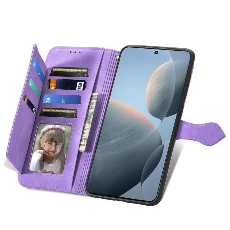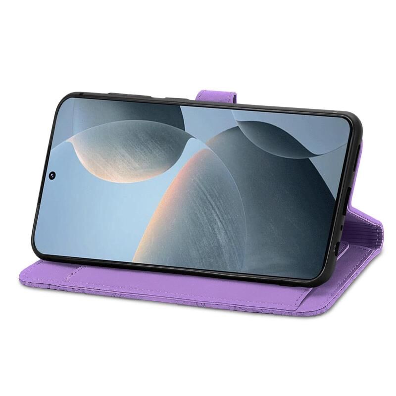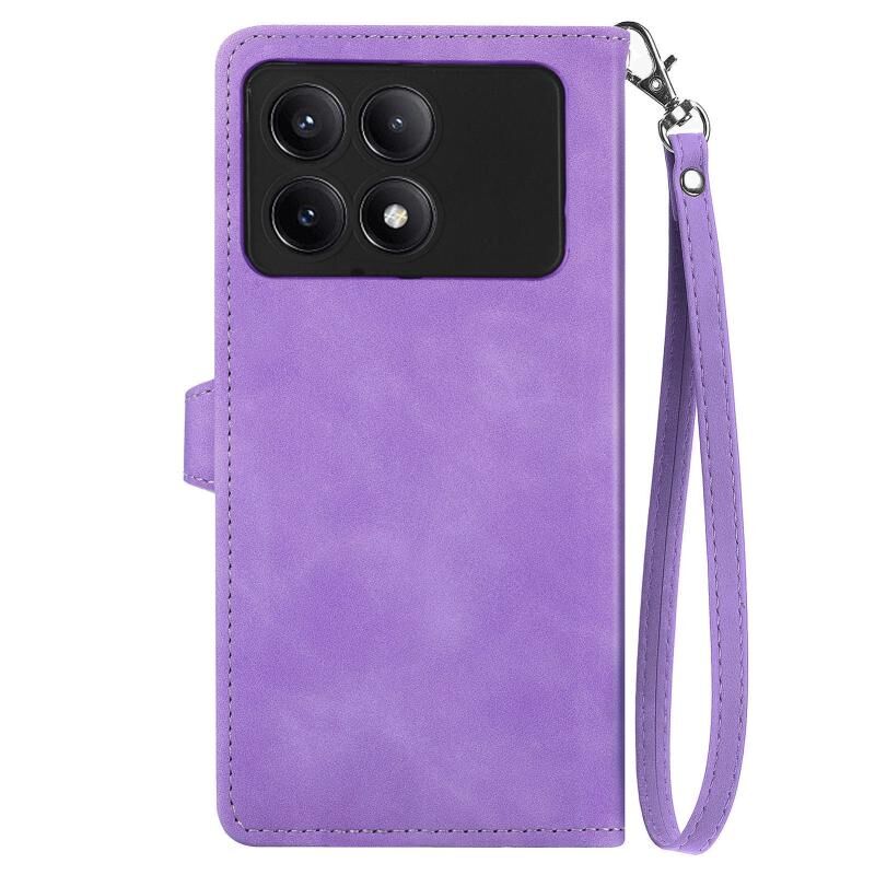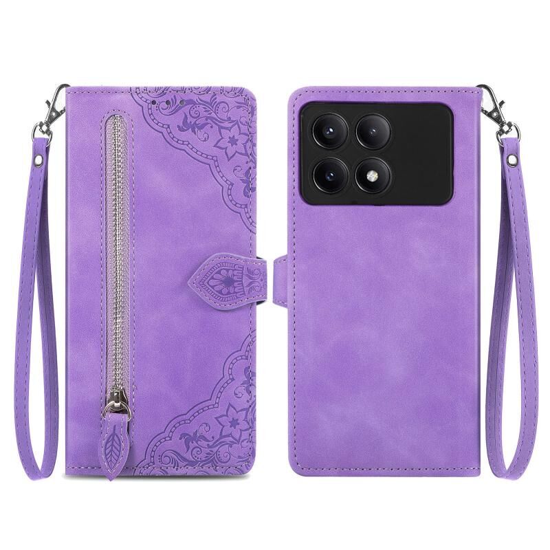 Για Xiaomi Redmi K70E ανάγλυφο λουλούδι φερμουάρ δερμάτινη θήκη τηλεφώνου (μωβ)