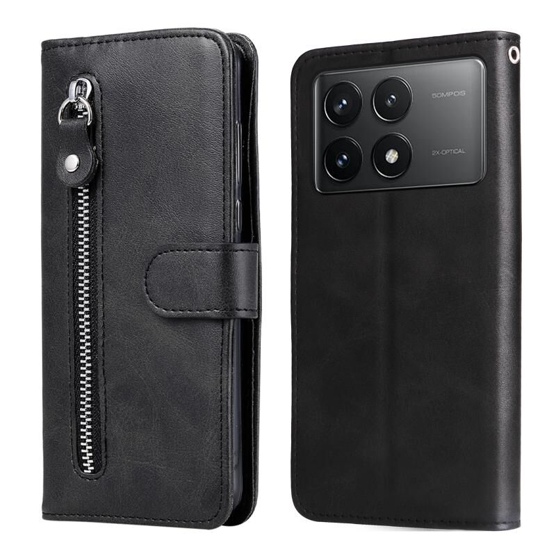 Για Xiaomi Redmi K70E Μόδα μοσχάρι υφή φερμουάρ δερμάτινη θήκη τηλεφώνου (μαύρο)