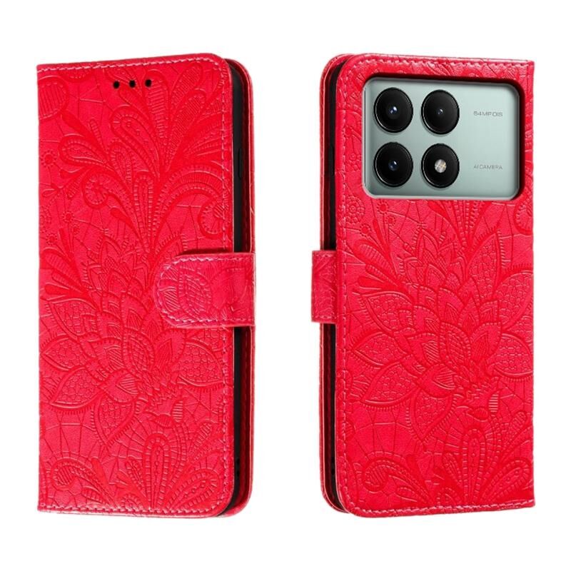 Για Xiaomi Redmi K70E Lace λουλούδι ανάγλυφο Flip δέρμα τηλέφωνο υπόθεση (κόκκινο)