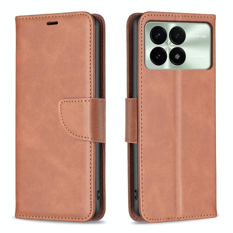 Θήκη τηλεφώνου από δέρμα με υφή δέρματος αρνιού και καθαρό χρώμα, τύπου flip, για Xiaomi Redmi K70E (Καφέ)