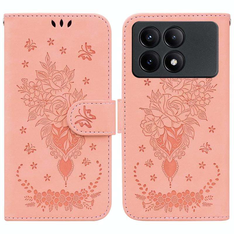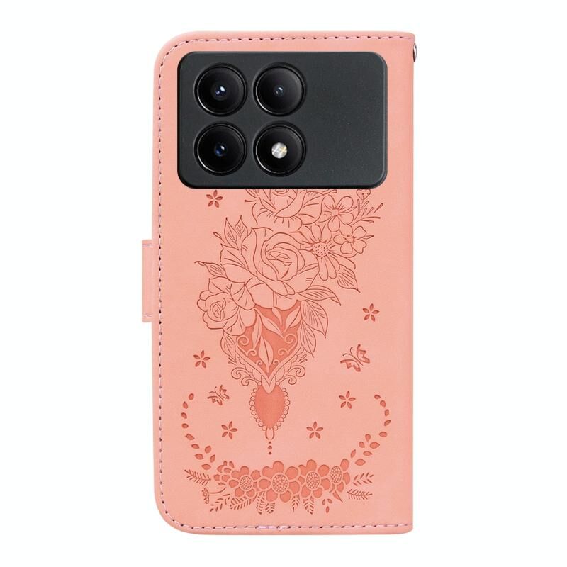 Θήκη δερμάτινη με ανάγλυφο σχέδιο πεταλούδας για Xiaomi Redmi K70E / Poco X6 Pro (Ροζ)