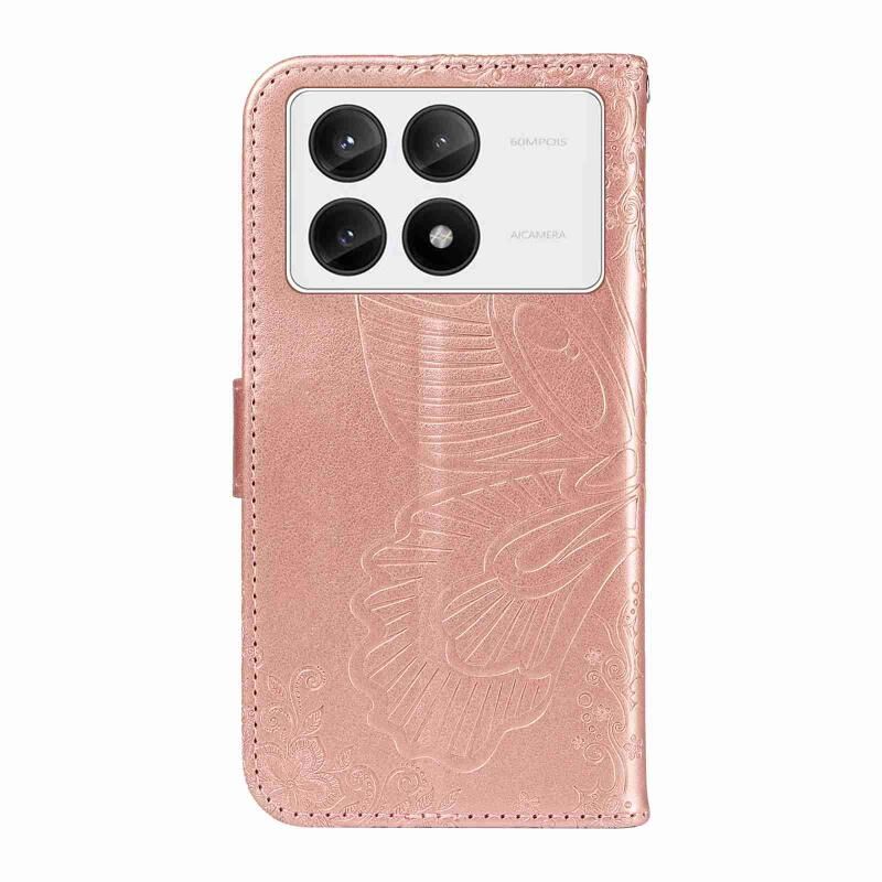 Θήκη τηλεφώνου από δέρμα με ανάγλυφο σχέδιο πεταλούδας για Xiaomi Redmi K70E (Ροζ χρυσός)