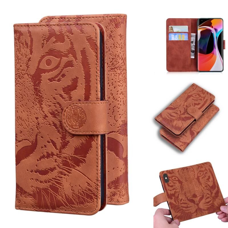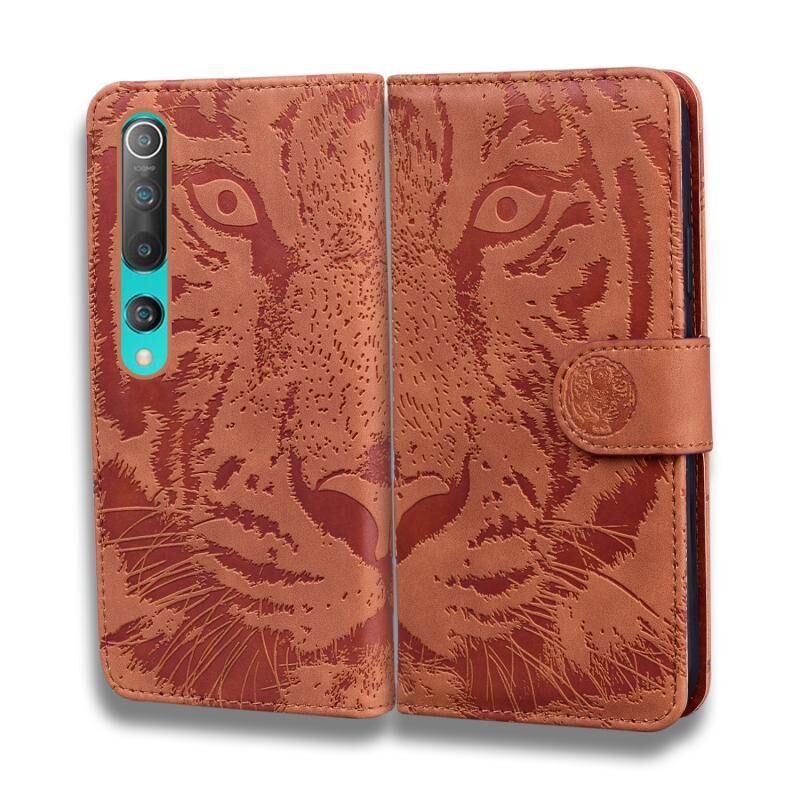 Για Xiaomi Redmi Mi 10 / 10 Pro Θήκη Δέρματος Οριζόντιας Αναδίπλωσης με ανάγλυφο σχέδιο τίγρης, με βάση & Θήκες Καρτών & Πορτοφόλι (Καφέ)