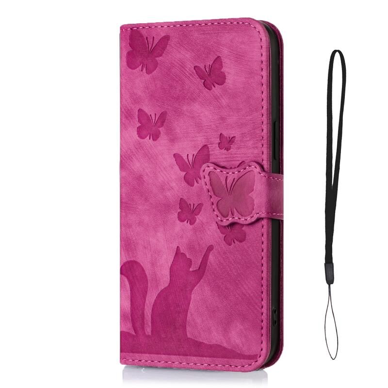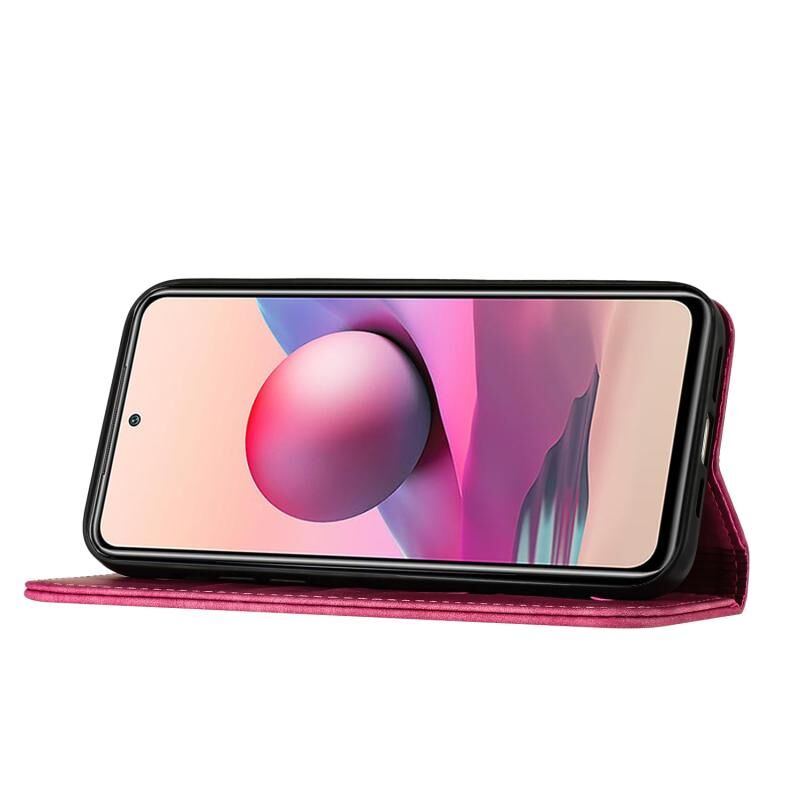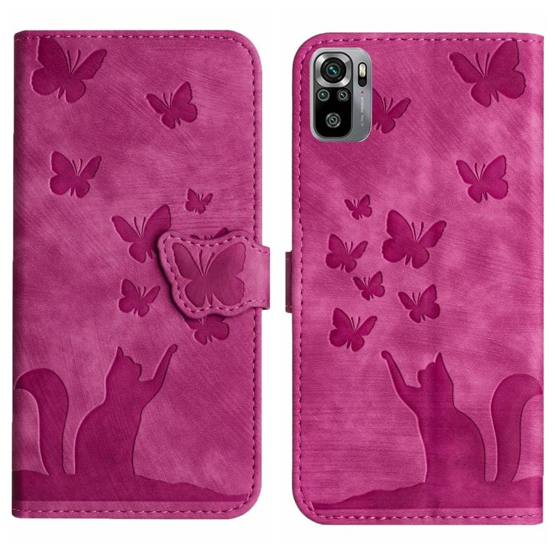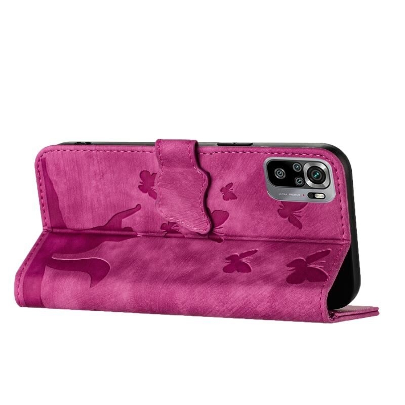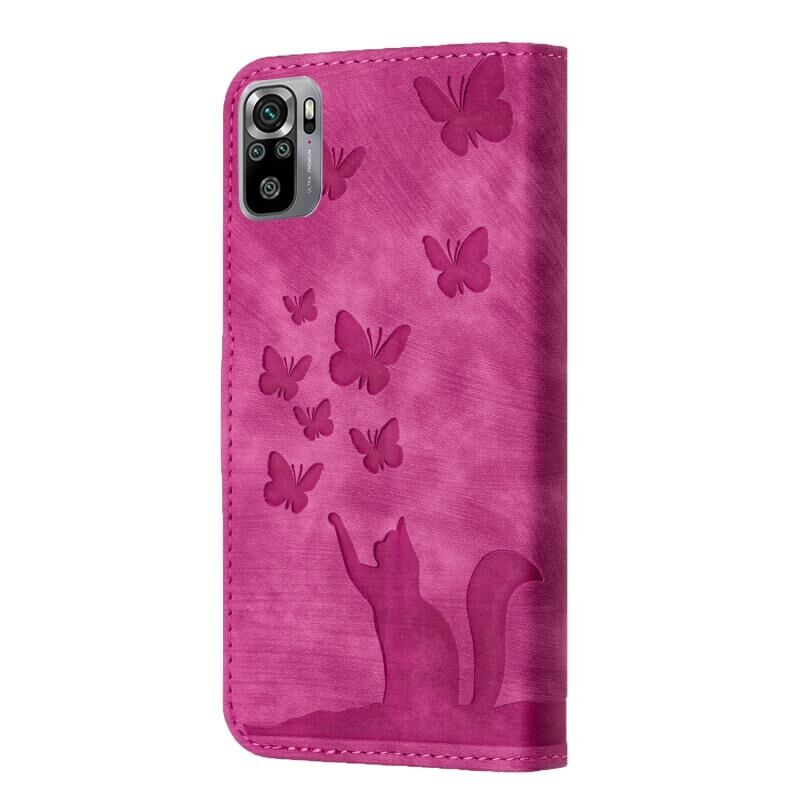 Θήκη δερμάτινη flip με ανάγλυφο σχέδιο γάτας για Xiaomi Redmi Note 10 / 10S (Ροζ)